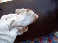 錆のカスをいらない布で掃除していきます。この時にカスを残してしまうと、仕上がり段階でカスが残ってしまい見ためが悪くなってしまうので、綺麗に拭き取るようにしましょう。汚れが特にひどく、こすっただけではなかなか落ちないという場合は、ホームセンターで売っているシンナーを水でうすめた液で拭き取ると良いでしょう。