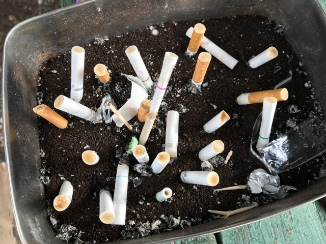 灰皿の中に入れて消臭