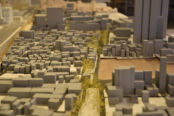 ▲「まちラボおおみや」内には、大学の設計課題と連携した「大宮東口プロジェクト(2013~2016)」において、副センター長の藤村龍至氏(現、東京藝術大学准教授)とともに東洋大学、東京藝術大学の学生が考えた提案模型などが並んでいます。